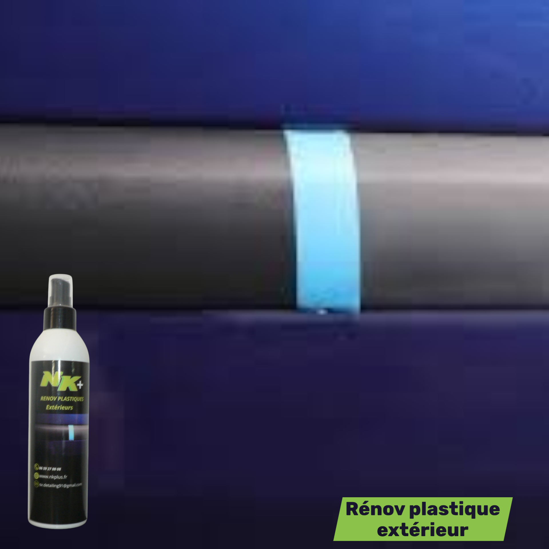 NK+ Renov Plastique est un rénovateur de plastiques extérieurs pour voiture. Il est spécialement conçu pour l'entretien des plastiques extérieurs : pare-chocs, baguettes de portes, rétroviseurs et protections de bas de caisses. Sa formule ultra nettoyante lui permet de détacher tout type de saletés même les plus tenaces et ce sans rinçage et sans eau.